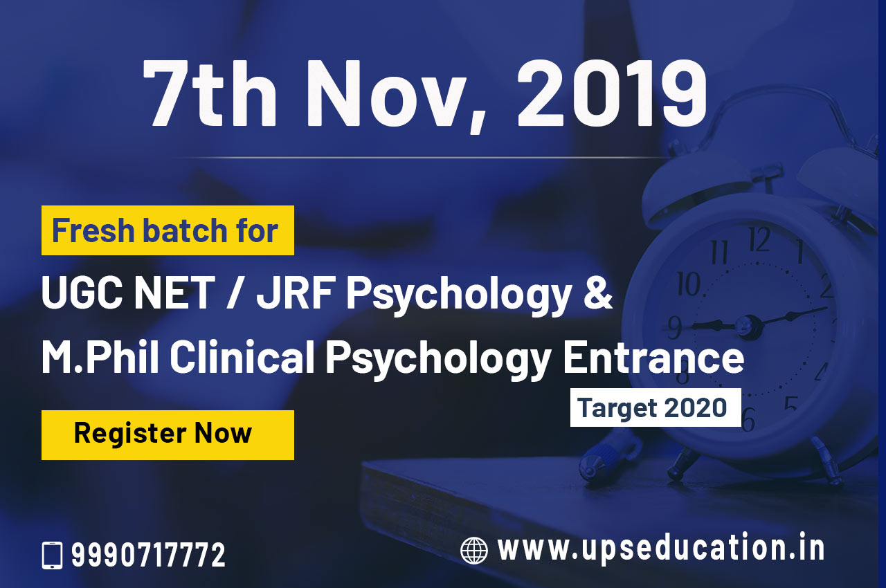 New Batch is going to start for the preparation of M.Phil Clinical Psychology Entrance 2020 and for UGC NET Psychology June 2019.
